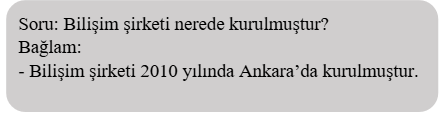 Örn: “Bilişim şirketi nerede kurulmuştur?”