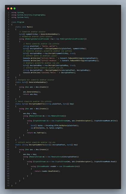 • ECC (Elliptic Curve Cryptography): ECC is an encryption algorithm that is very effective in terms of security despite having smaller key sizes. It is based on elliptic curve theory and therefore provides security with smaller keys.